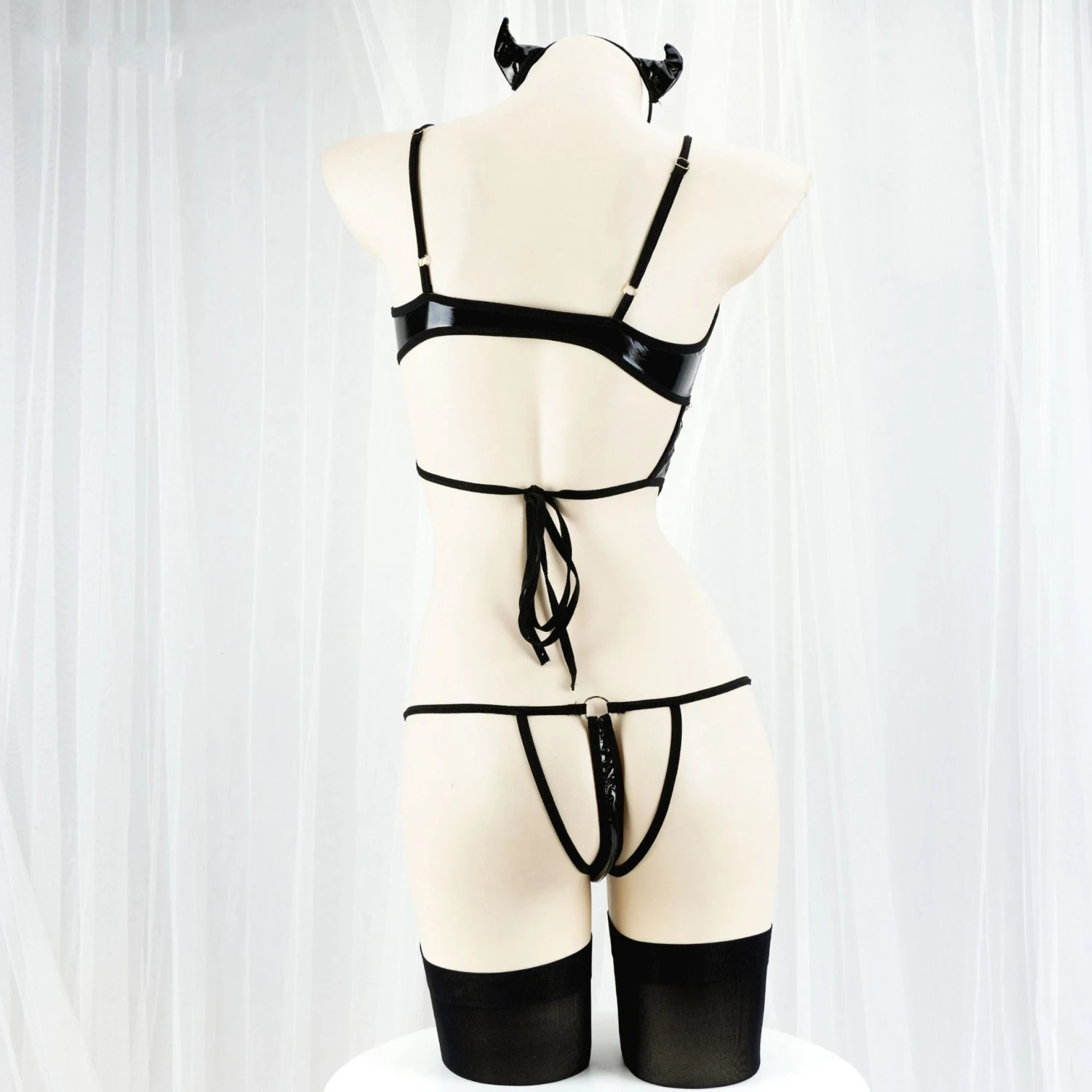 - Package include: 1x top+1x pantie+1x choker+1x leg piece;