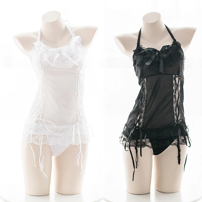 Japanese School Girl Ribbon Chiffon Sexy Kawaii Ruffle Anime Sheer Lingerie