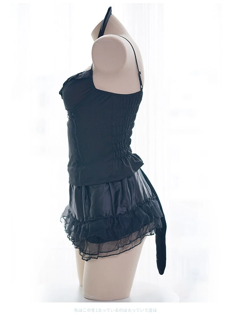 Sexy Cute Black Cat Girl Ears Tail Headband Kawaii Japanese Maid Dress – 3PCS Set