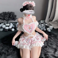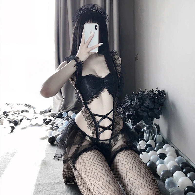Japanese Anime Game Kawaii Lolita Gothic Maid Lingerie – Cat Keyhole Swan