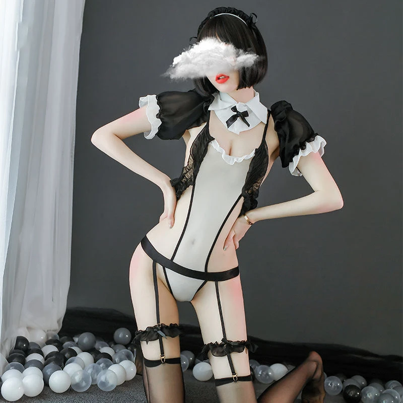 Japanese Anime Game Kawaii Lolita Gothic Maid Lingerie – Cat Keyhole Swan